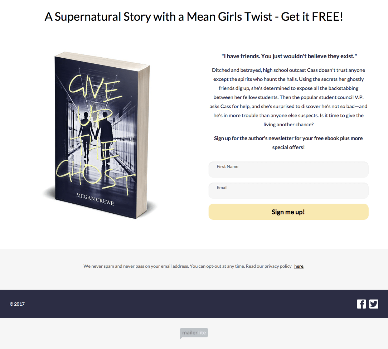 Megan Crewe, Give Up The Ghost example - Made with MailerLite