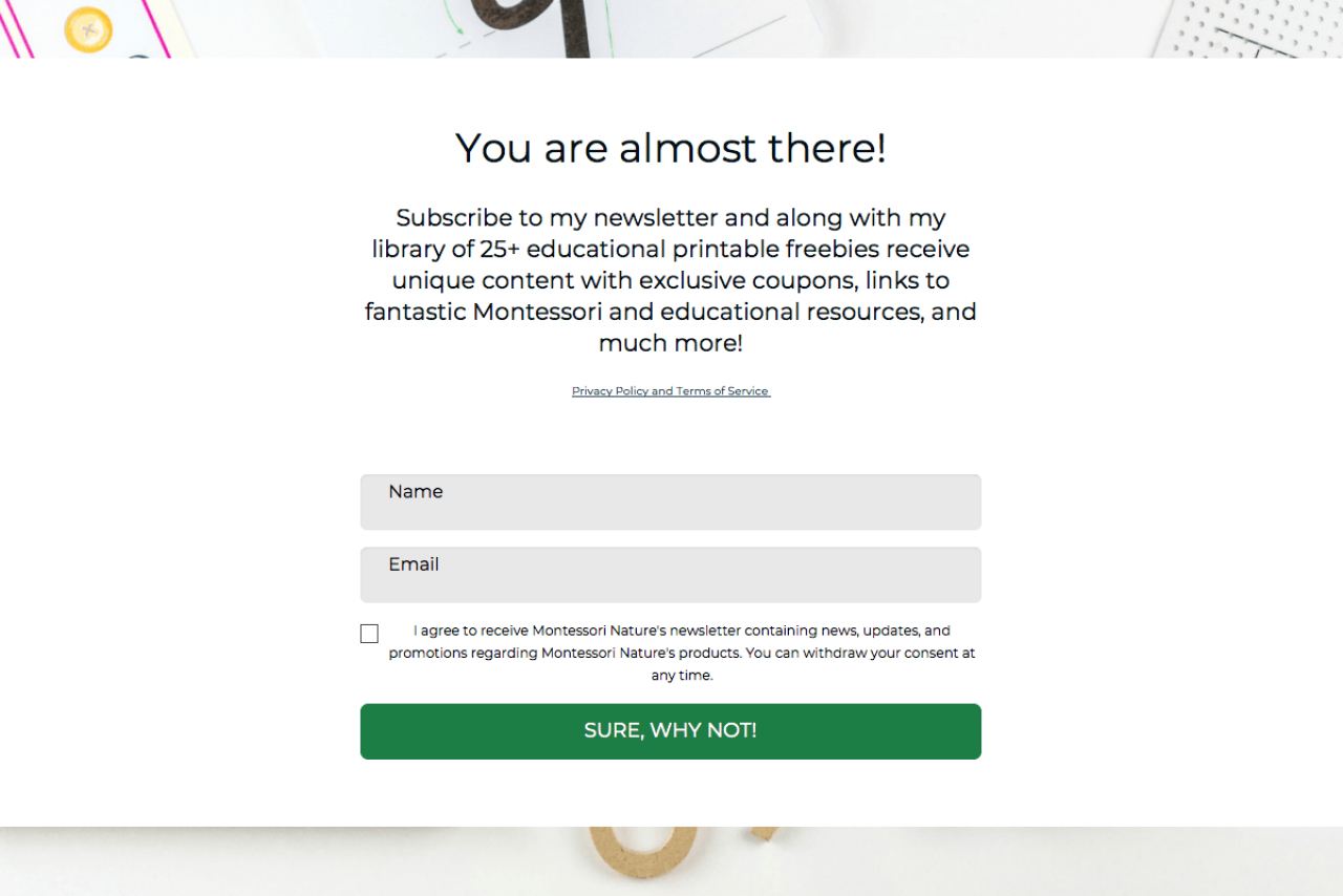 Montessori Nature example - Made with MailerLite