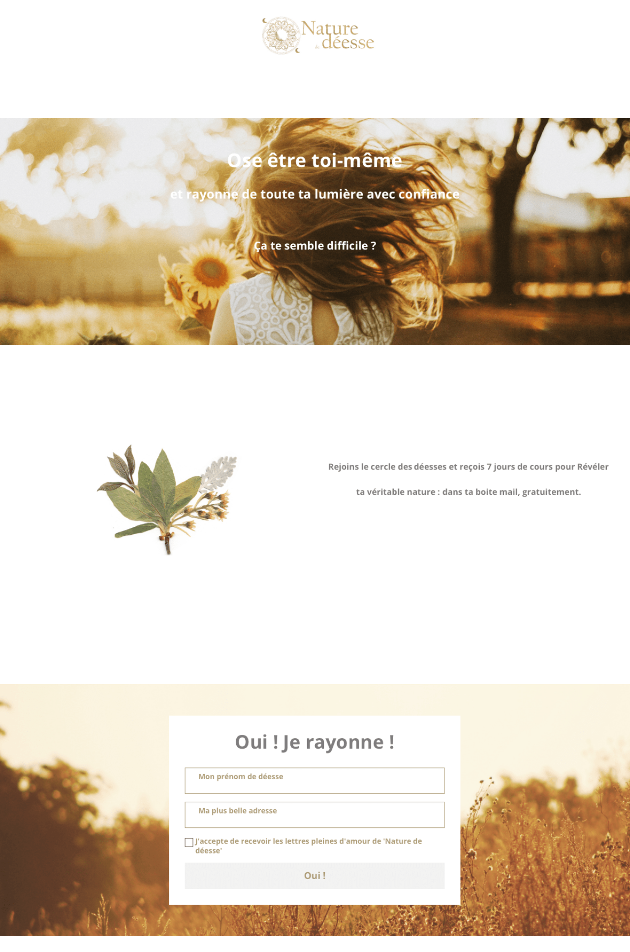 Nature de deesse landing page
