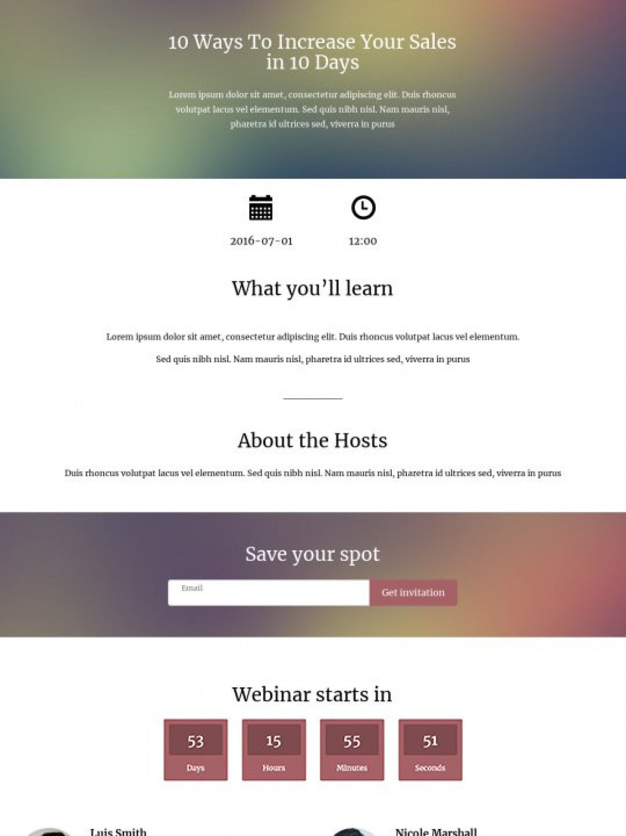 Webinar landing page