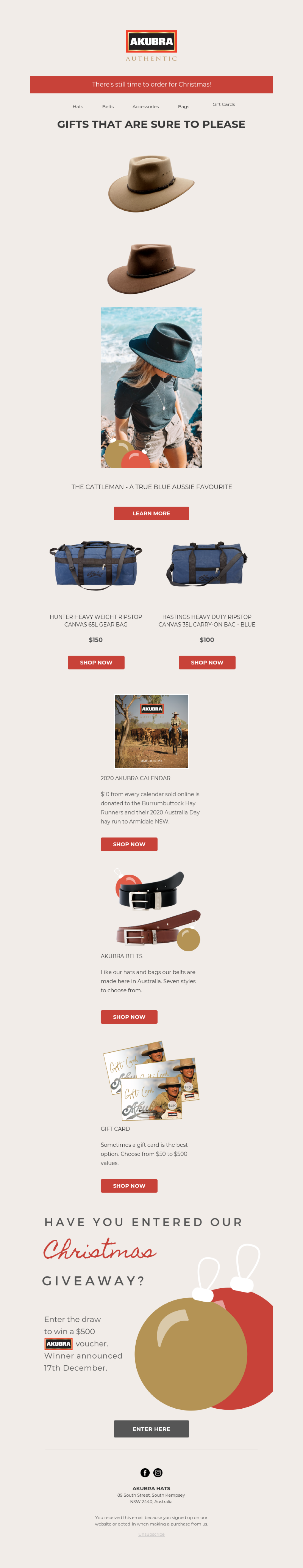 Akubra Hats - Christmas sale newsletter