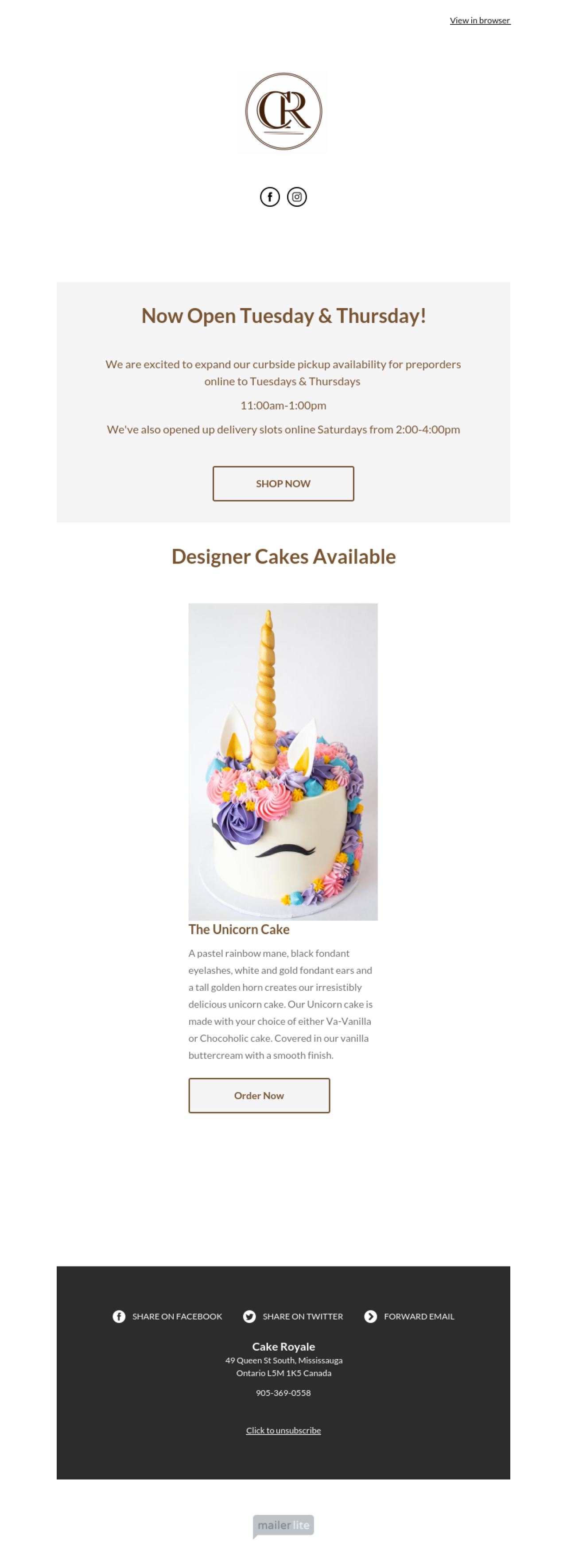 Cake Royale example - Made with MailerLite
