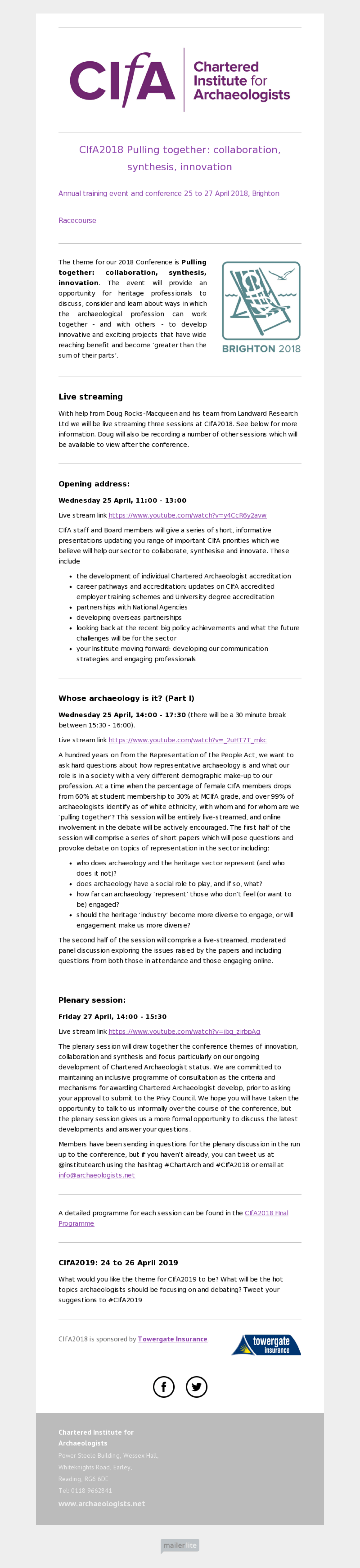 Chartered Institute for Archaeologists example - Made with MailerLite
