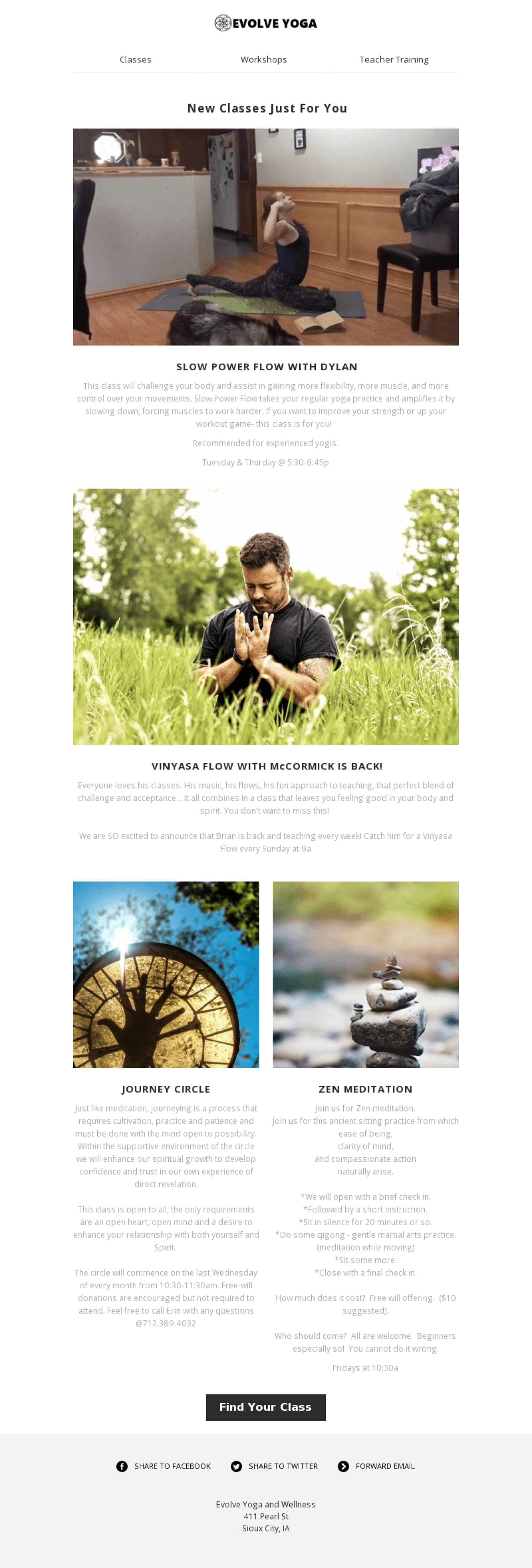 Evolve Yoga and Wellness Center example - Made with MailerLite