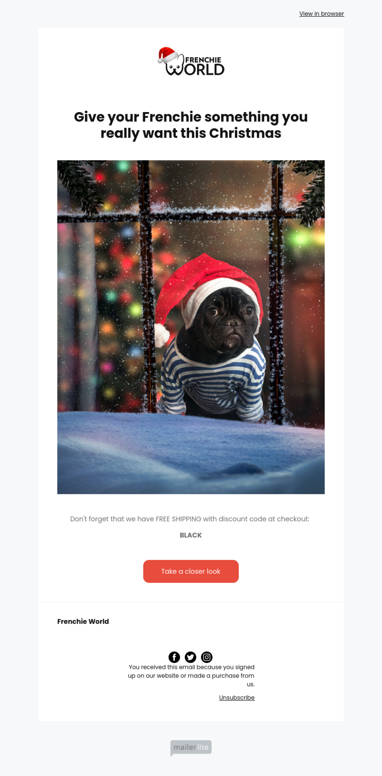 Frenchie World - Christmas example - Made with MailerLite