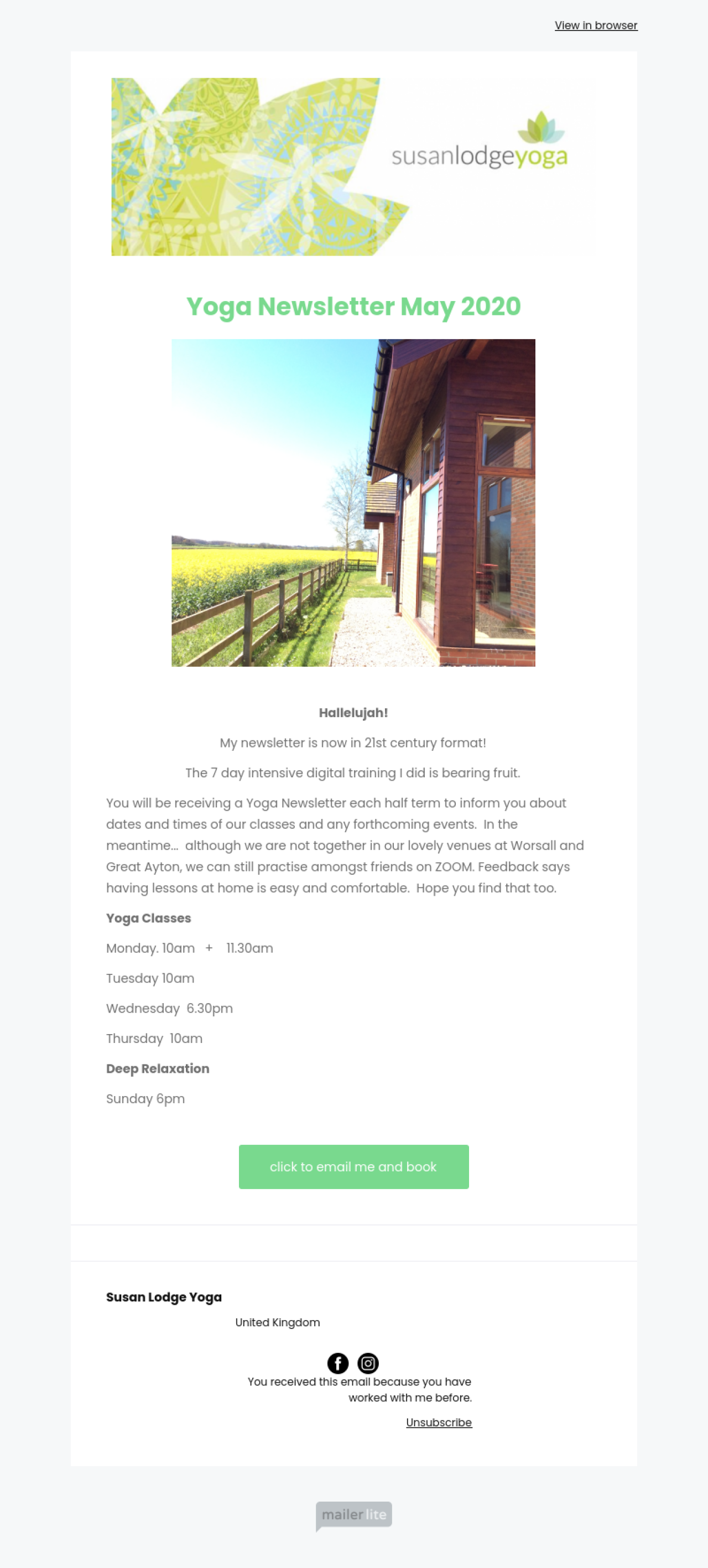 Susan Lodge Yoga example - Made with MailerLite