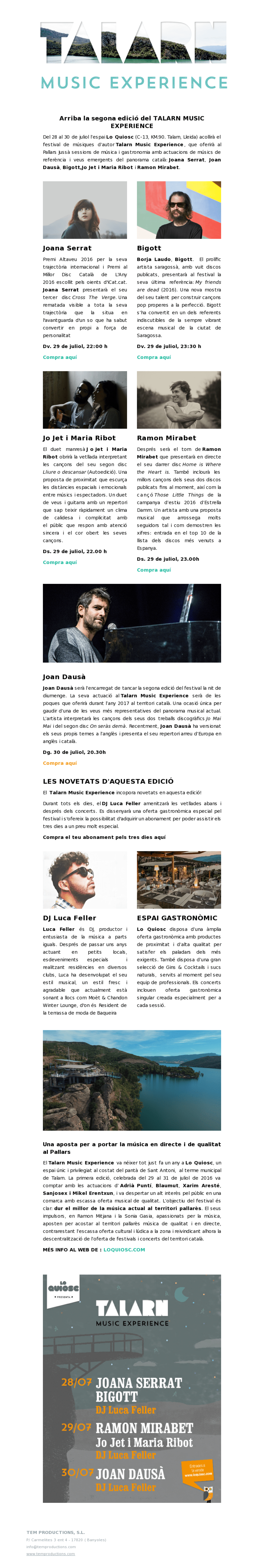 TEMproductions newsletter