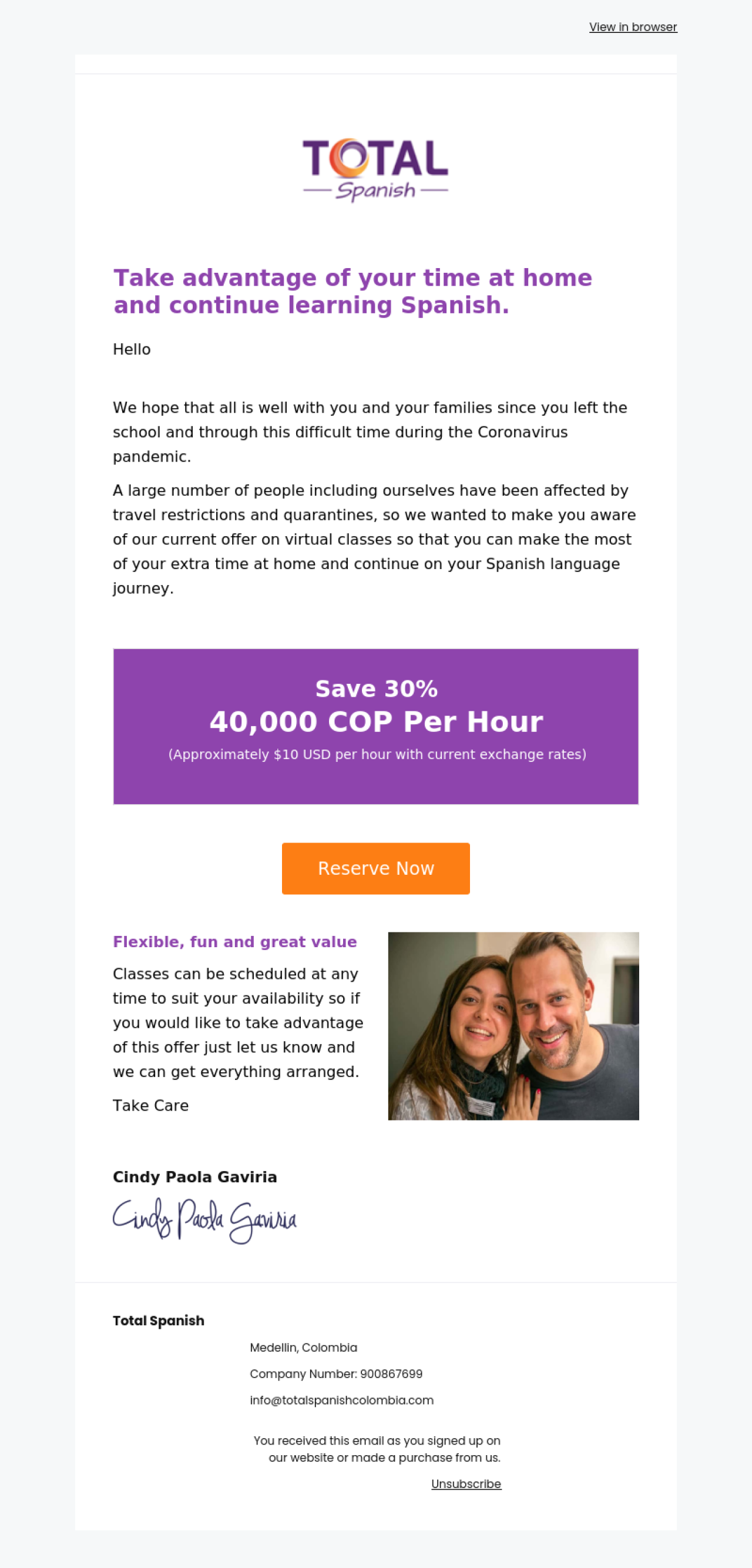 Total Spanish example - Made with MailerLite