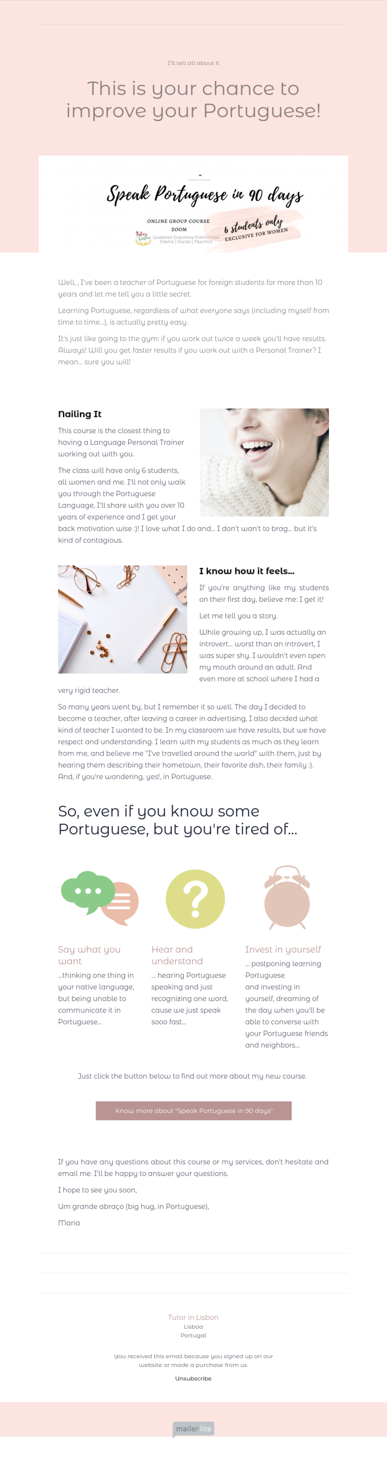 Tutor in Lisbon example - Made with MailerLite