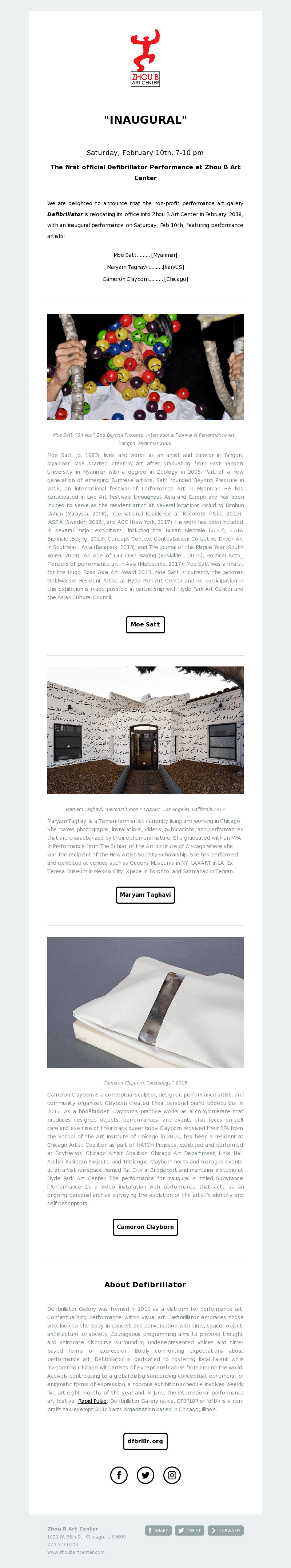 Zhou B Art Center newsletter