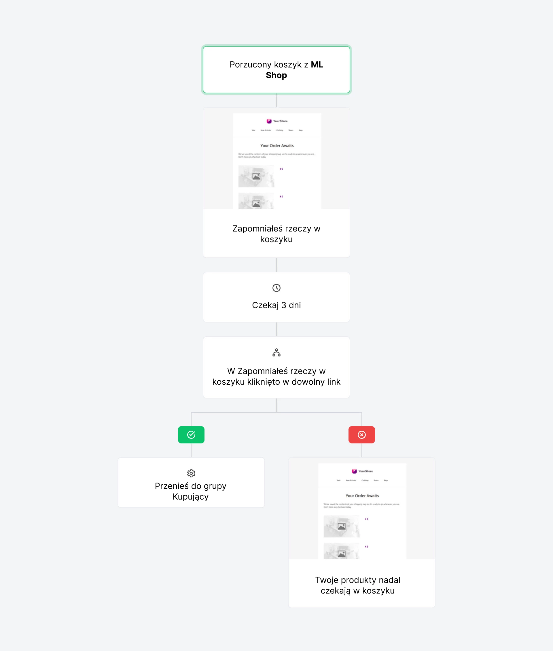 Na ścieżce Nie kliknij krok E-mail i użyj go do ponownego wysłania wiadomości e-mail z porzuconym koszykiem.