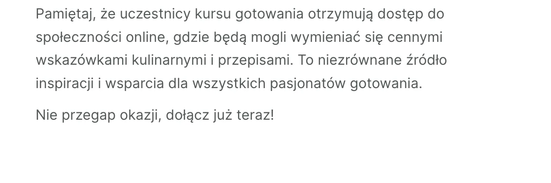 Polecenie: Napisz CTA, zachęcające do zapisania się do społeczności kursu gotowania. Wygeneruj także tekst do przycisku zapisu.