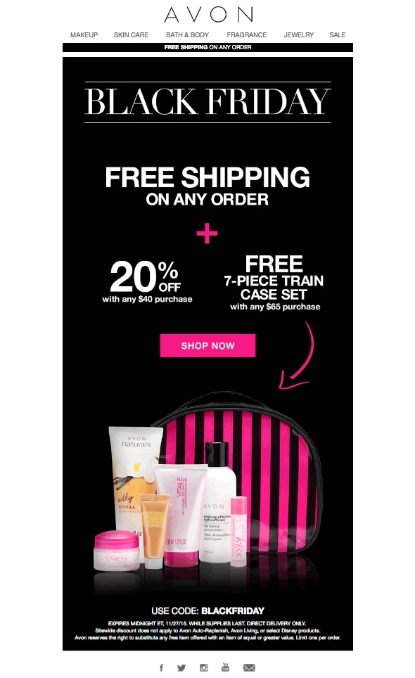 Jeśli jednak nie możesz pozwolić sobie na mega obniżki, zaoferuj klientom inną wartość dodaną. Na przykład zaproponuj, że w czasie promocji z okazji Black Friday wszystkie zamówienia będą wysyłane za darmo. Możesz też dodawać do każdej paczki mały prezent.