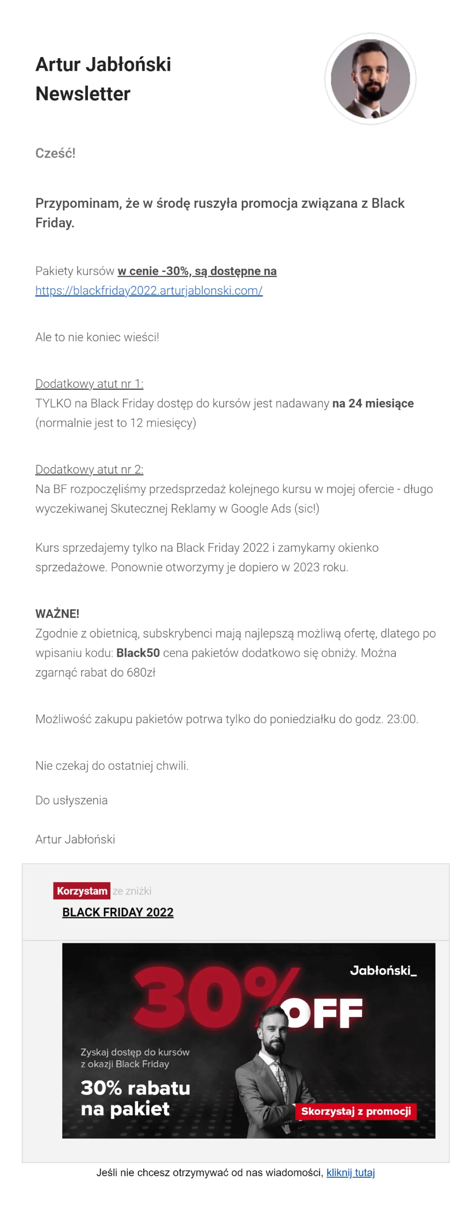 E-mail 3: Główna oferta wysyłana rano w dzień Black Friday
