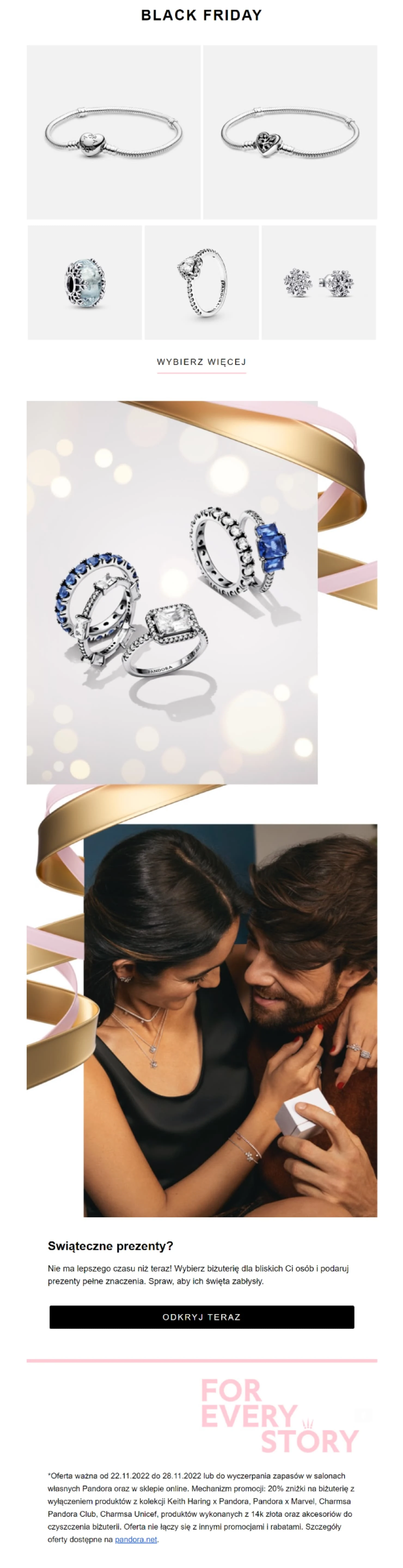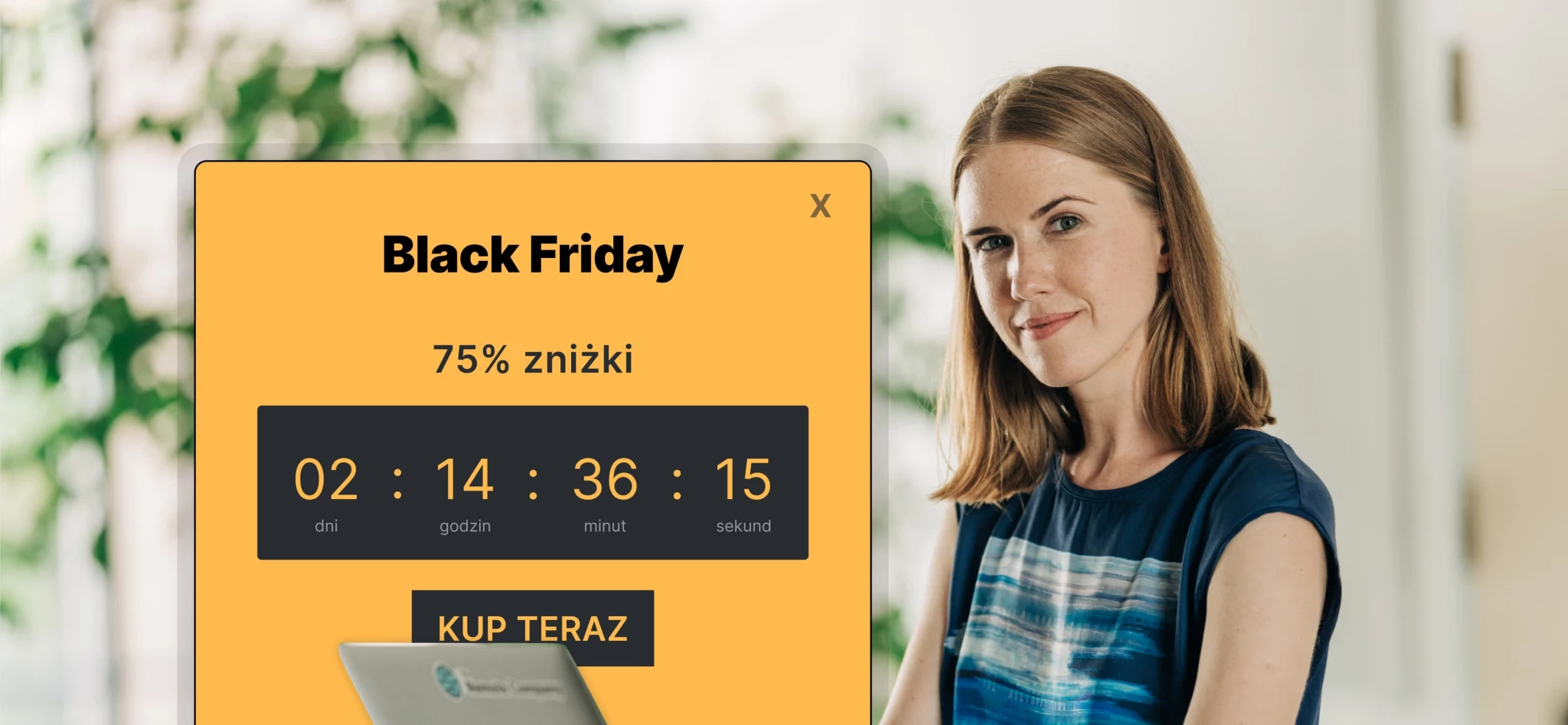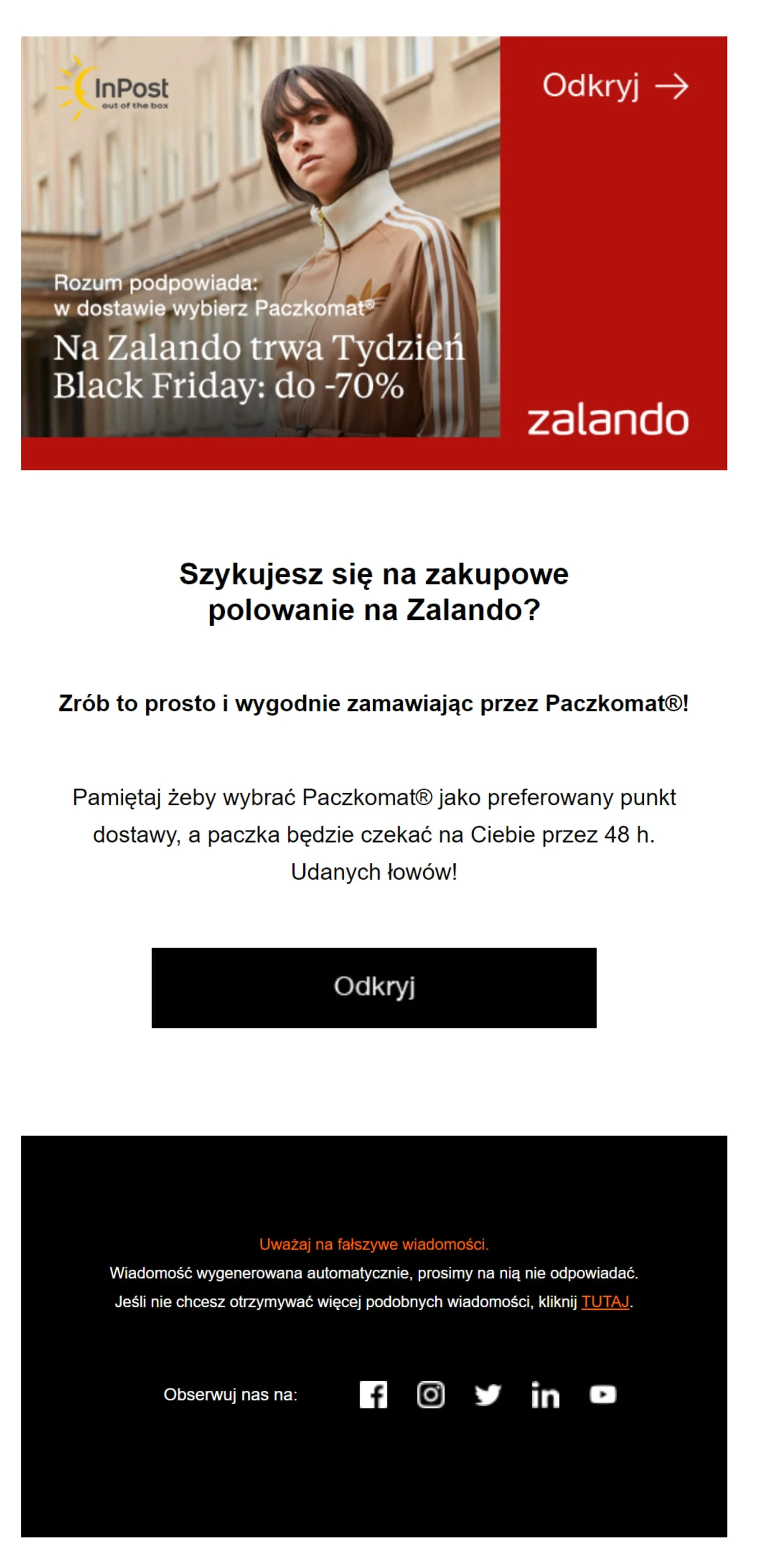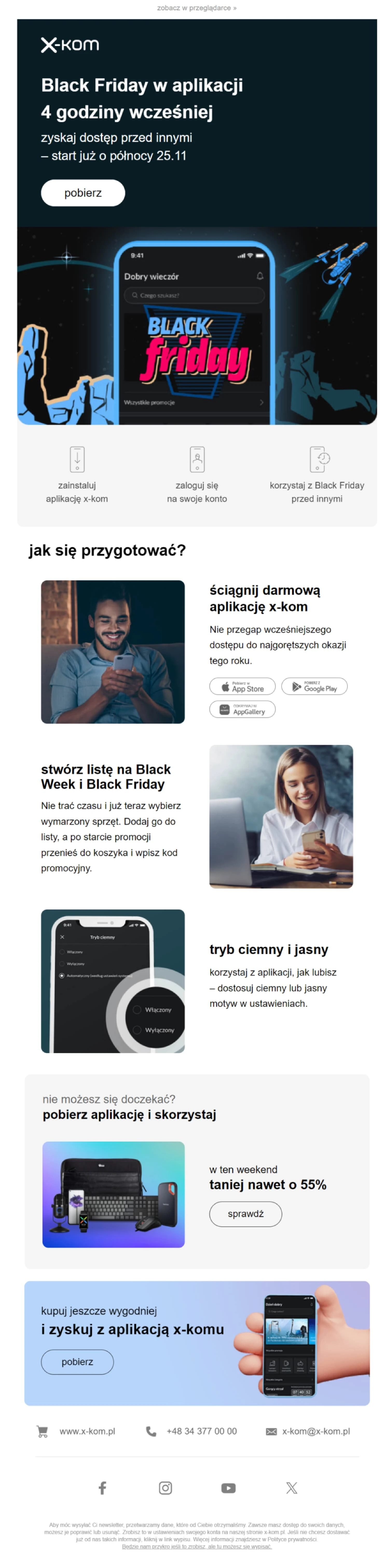 Zawiera przycisk CTA, który prowadzi bezpośrednio do strony z ofertą Black Friday.