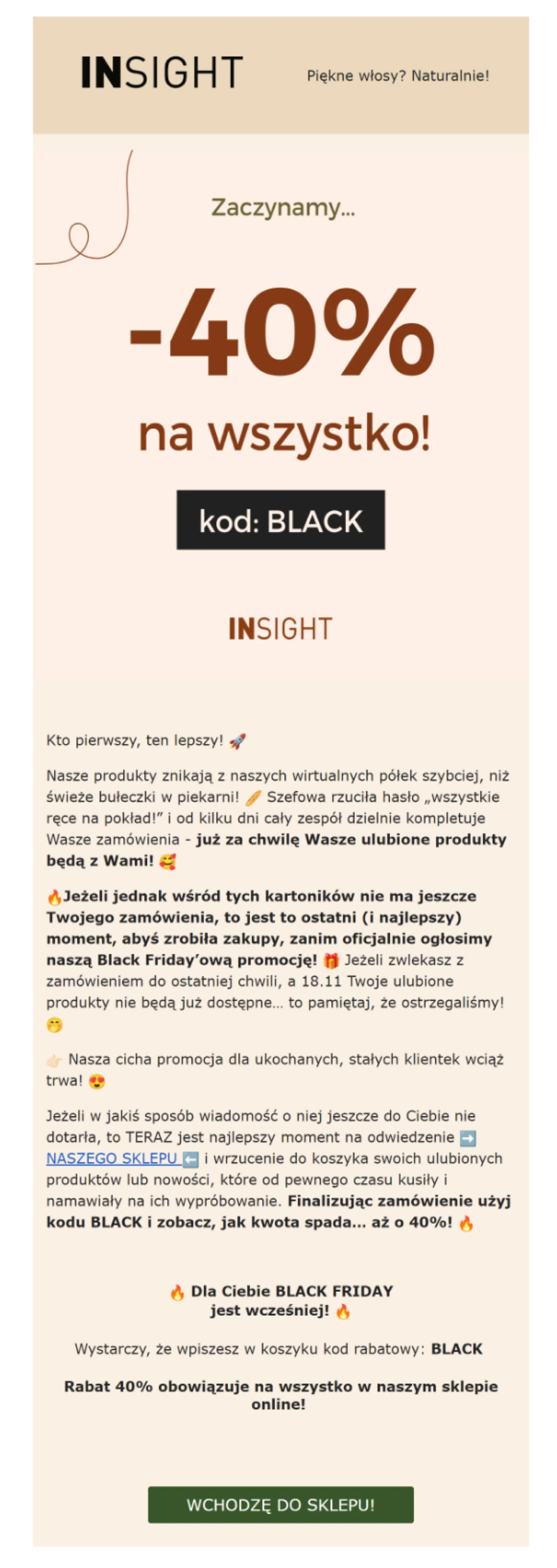 Kreatywność w e-mailu kończącym promocję to idealna okazja, by jednocześnie przekonać klienta do zakupu i pokazać mu prawdziwą osobowość Twojej marki.