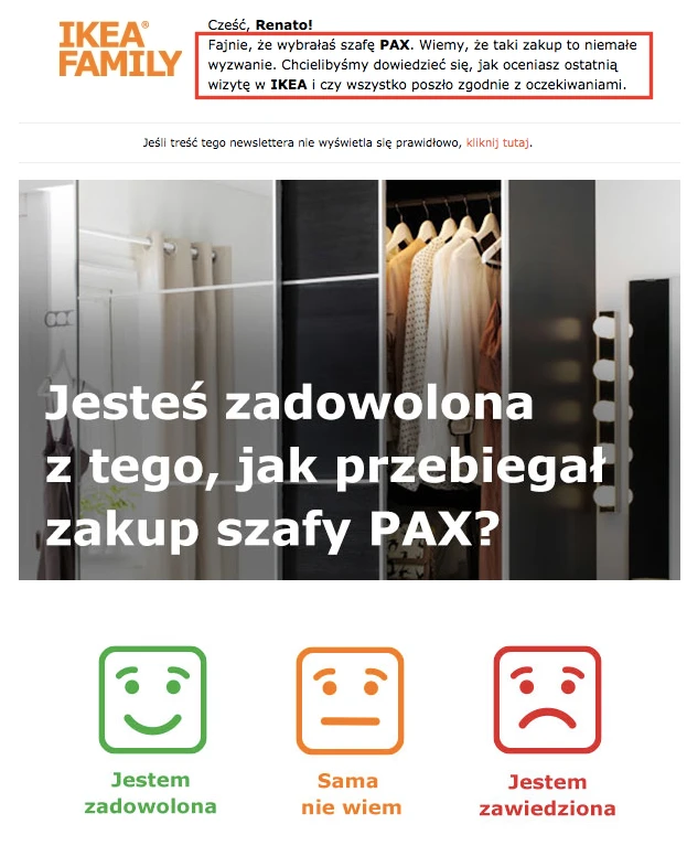 Innym przykładem pozytywnego zaskoczenia, tym razem już po zakupach, jest kampania e-mail, która została do mnie wysłana przez IKEĘ.