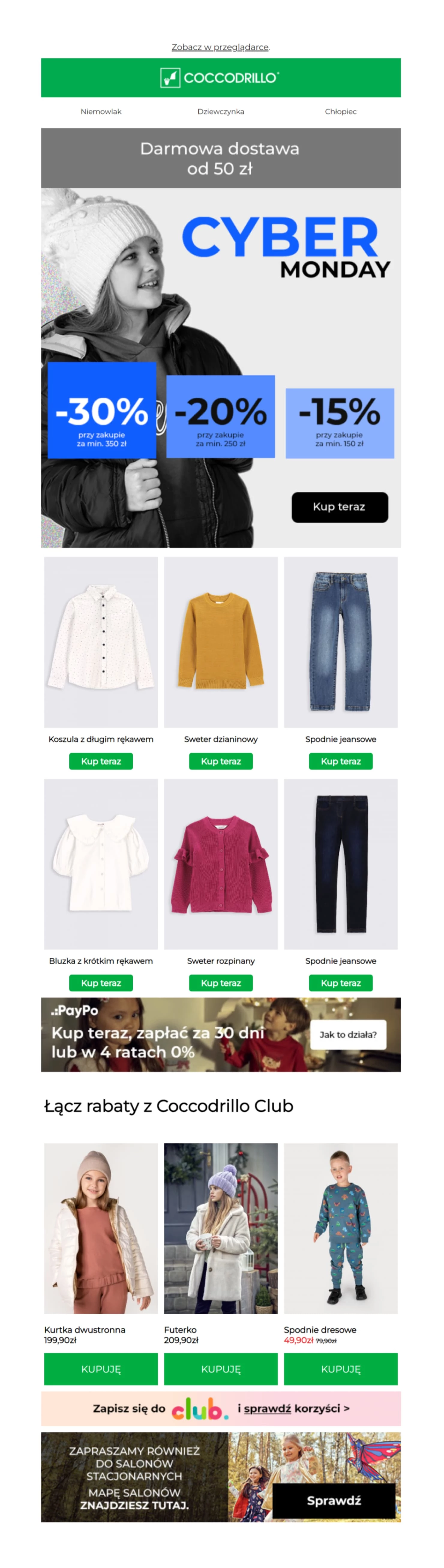 Cyber Monday to nie pora na zgadywanki! Coccodrillo od razu przykuwa uwagę poprzez klarowną i łatwą w odczycie ofertę.