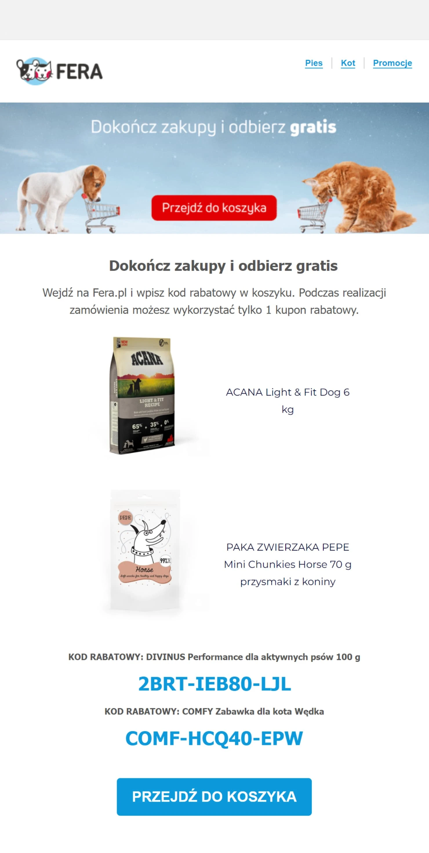 CTA Przejdź do koszyka ułatwia dokonanie zakupów.
