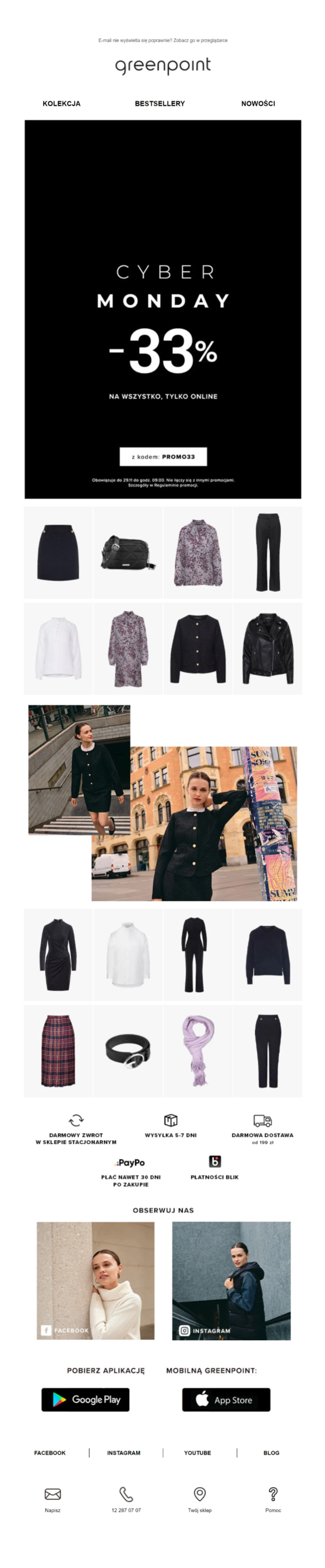 Buduj Twoją społeczność w mediach społecznościowych poprzez e-mail marketing. Greenpoint dodaje w swoim newsletterze konto na Instagramie i Facebooku.