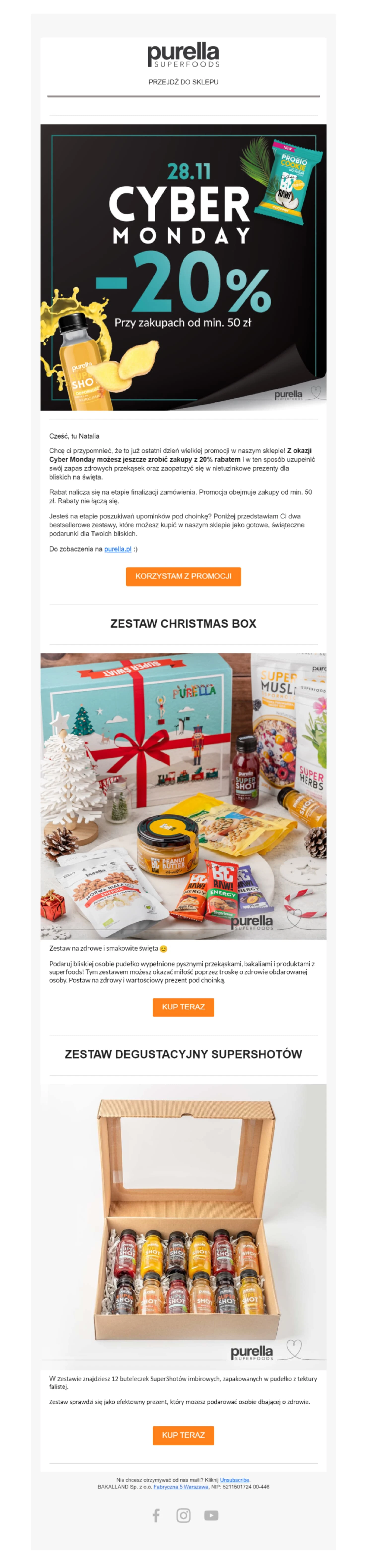 Black Week wypada na niedługo przed świętami. Zaproponuj zestawy, które zachęcają do zrobienia prezentów sobie i innym! Zerknij na e-maila Purella.