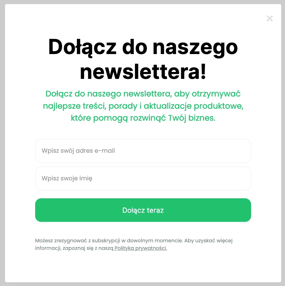 Najłatwiejszym z nich jest dodanie w formularzu zapisu do newslettera pola, w którym poprosisz o dane. W ten sposób upewniasz się, że odbiorcy dadzą Ci niezbędne informacje już na samym początku.