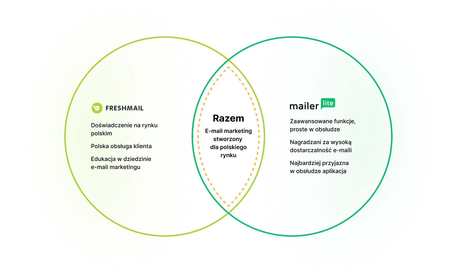 FreshMail i MailerLite są narzędziami do e-mail marketingu, które pomogły rozwinąć się milionom biznesów poprzez oferowanie przyjaznych dla użytkownika rozwiązań. W szybko zmieniającym się środowisku połączyła nas wspólna pasja do pomagania ludziom budować długotrwałe relacje. A to zainspirowało nas do stworzenia wspólnej idei, której celem jest uruchomienie ulepszonej, przyszłościowej polskiej platformy e-mail: MailerLite Polska.