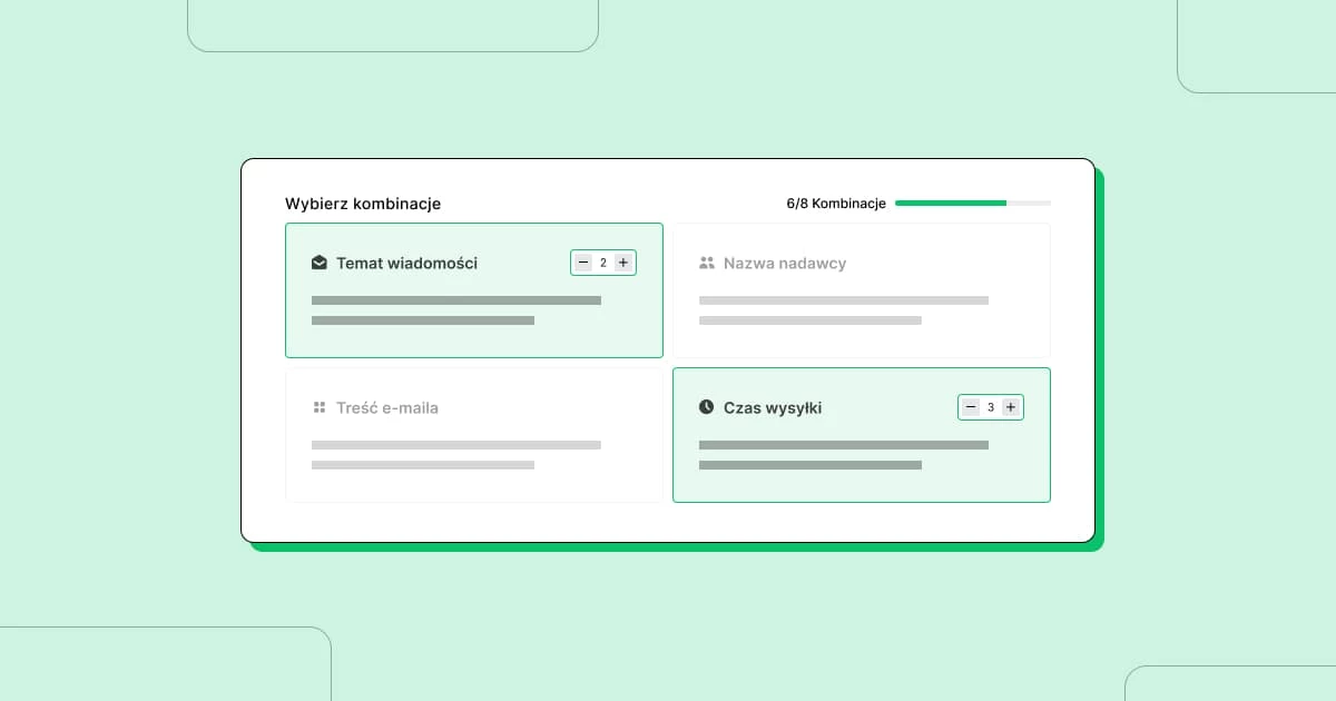 Rób coś więcej niż same Testy A/B — poeksperymentuj z większą ilością zmiennych i zobacz, co działa. Nasza nowa funkcja ekscytuje, bo pozwala przetestować wiele wersji e-maila i pokazuje, co najbardziej zwiększa zaangażowanie Twoich odbiorczyń i odbiorców.