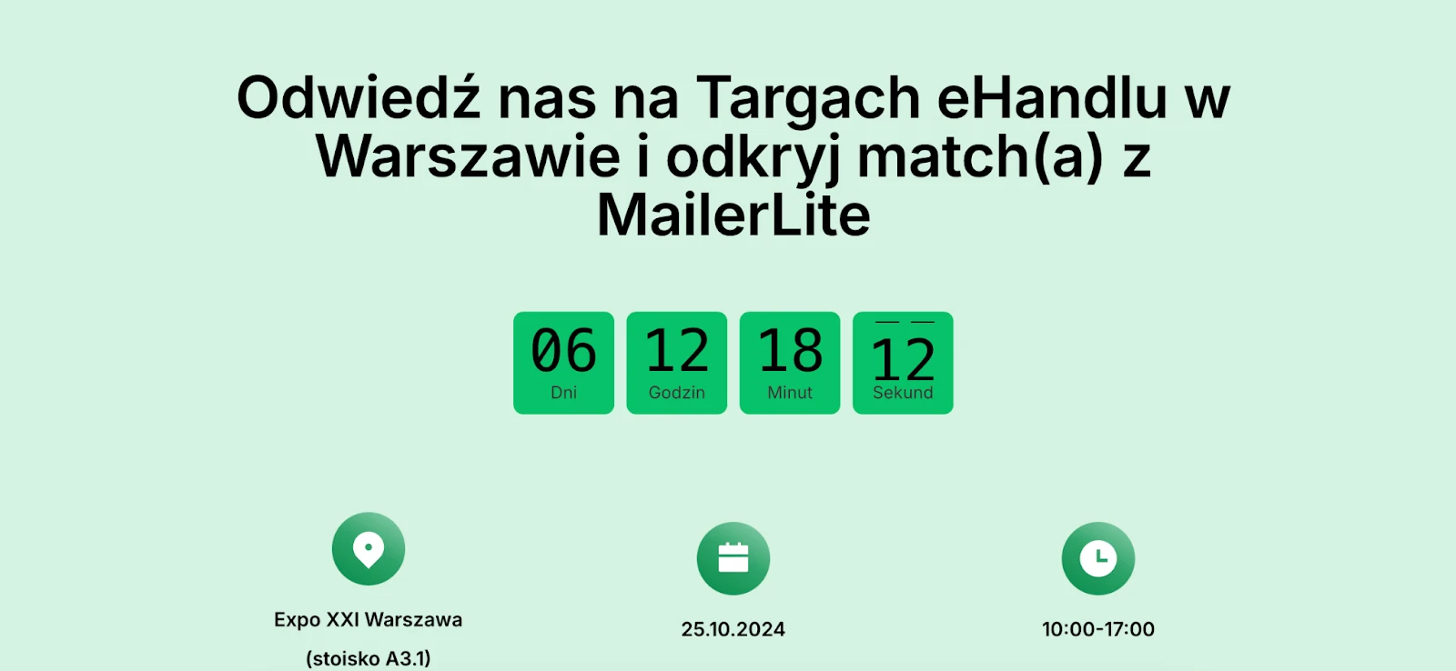 Aby wykorzystać FOMO pokaż, jak niewiele czasu pozostało do zakończenia promocji lub wydarzenia:
