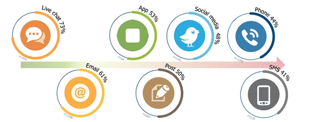 Zgodnie z badaniami E-Consultancy, czat na żywo na stronie firmowej daje klientom największą satysfakcję, jeśli chodzi o obsługę klienta. Na poniższym obrazku możesz zobaczyć porównanie zadowolenia klientów także z innych kanałów customer service: