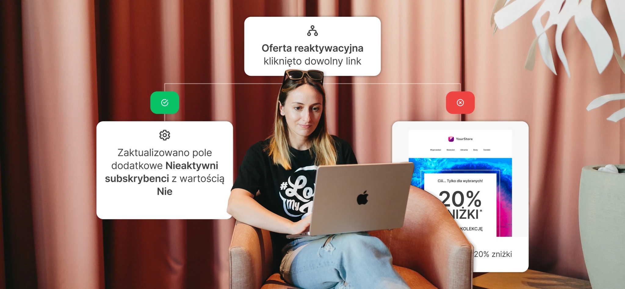 Rabaty i kupony w newsletterach angażują nieaktywnych subskrybentów, dając im dodatkowy impuls do zakupu produktów w Twoim sklepie internetowym.