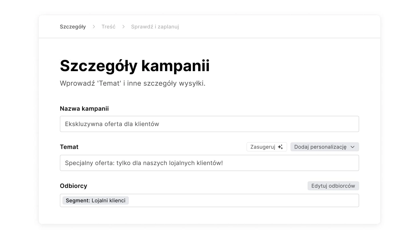 Korzystaj z tej funkcji wraz z szablonami wiadomości e-mail i zapisywalnymi blokami treści, aby szybko tworzyć kampanie e-mail bez wysiłku.