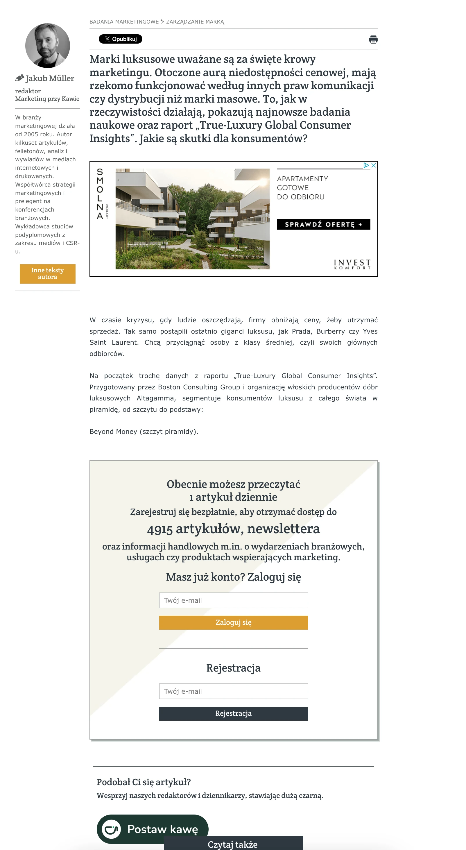 Jeśli Twój blog jest oparty na WordPressie, druga możliwość to zastosowanie dedykowanej wtyczki, dzięki której odbiorca będzie mógł przeczytać tylko fragment danego artykułu, a jego pozostała część zostanie odkryta po podaniu adresu e-mail. Ten mechanizm wykorzystuje na swoim blogu m.in. serwis Marketing przy Kawie.