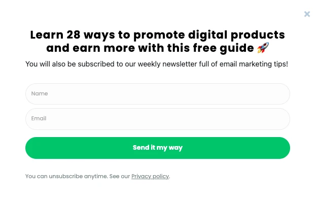 Zrób to, wyraźnie zaznaczając w formularzu lub pop-upie, że przekazując adres e-mail osoba dołącza do Twojej listy. Jasno podkreśl to w nagłówku i podtytule, jak na poniższym obrazku, lub dodaj pole wyboru, którego użytkownicy mogą użyć, aby wyrazić zgodę.