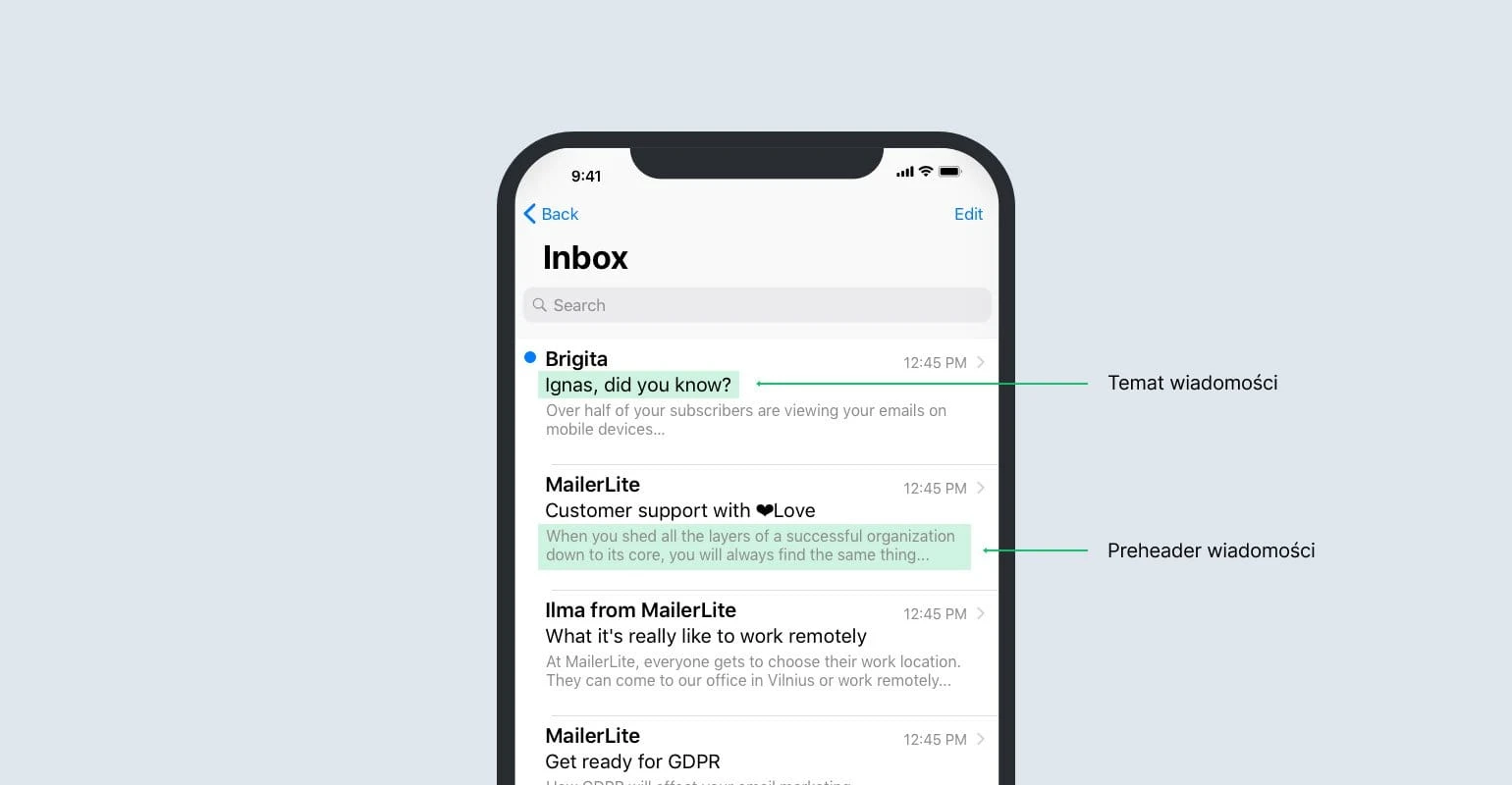 Użyj go, aby podać więcej informacji o treści wiadomości e-mail, aby zachęcić subskrybentów do jej otwarcia. Korzystanie z odpowiedniej kombinacji tematu i preheadera to skuteczny sposób na zwiększenie wskaźnika otwarć.