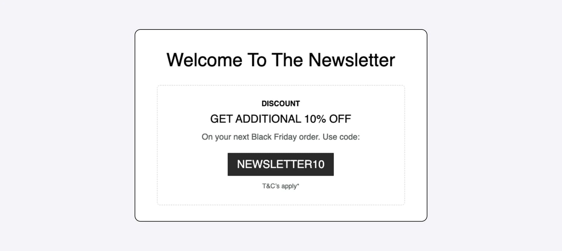 Fridja korzysta także z innych opcji e-mail marketing automation. Podczas Black Friday marka oferowała dodatkowe 10% zniżki każdemu, kto zapisał się do listy mailingowej.