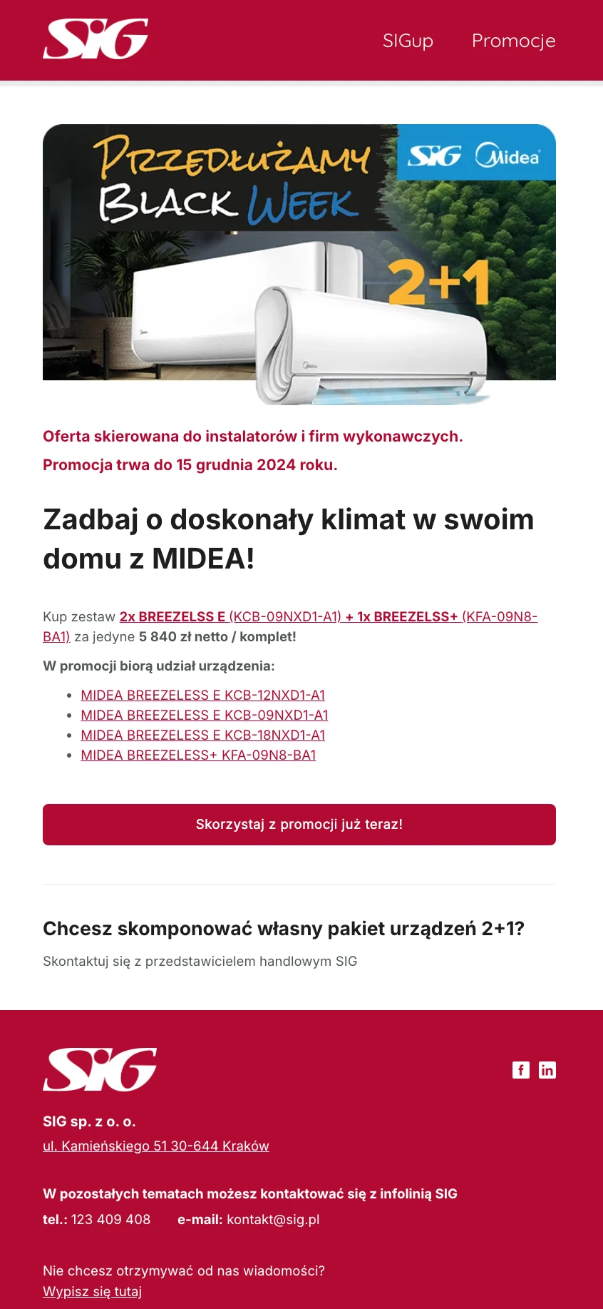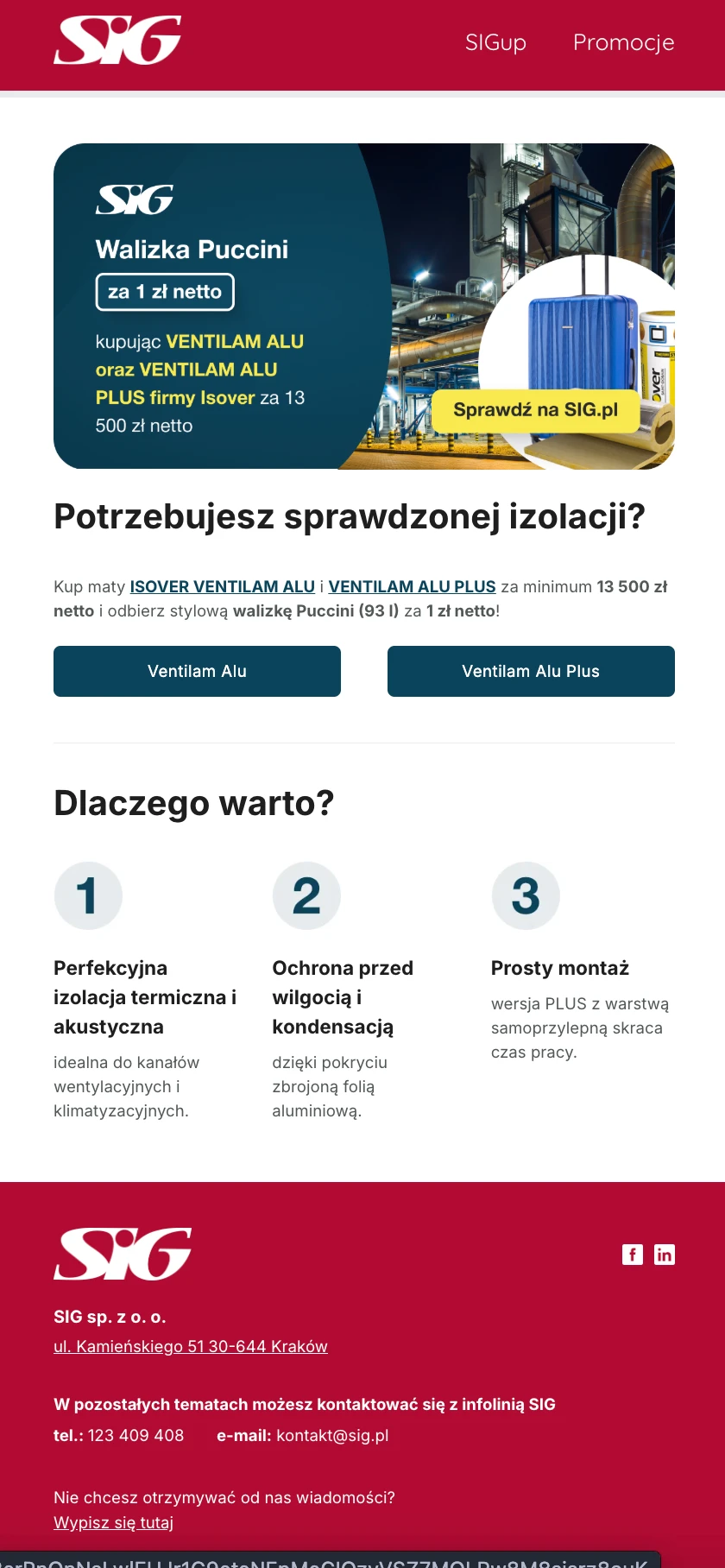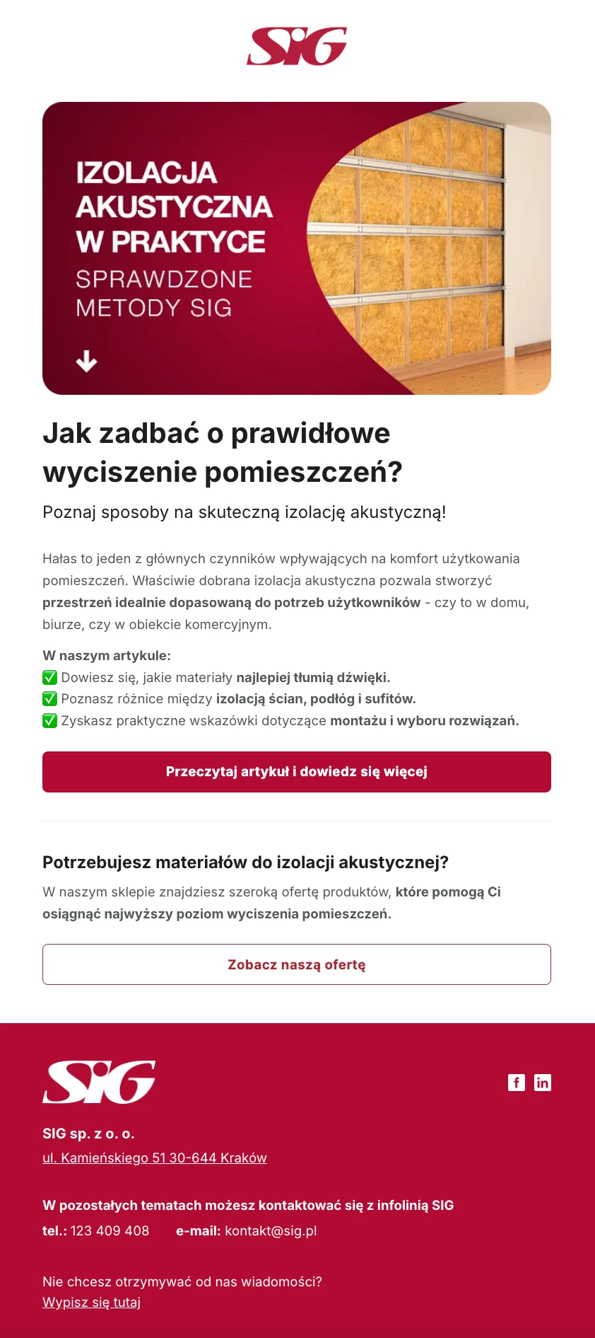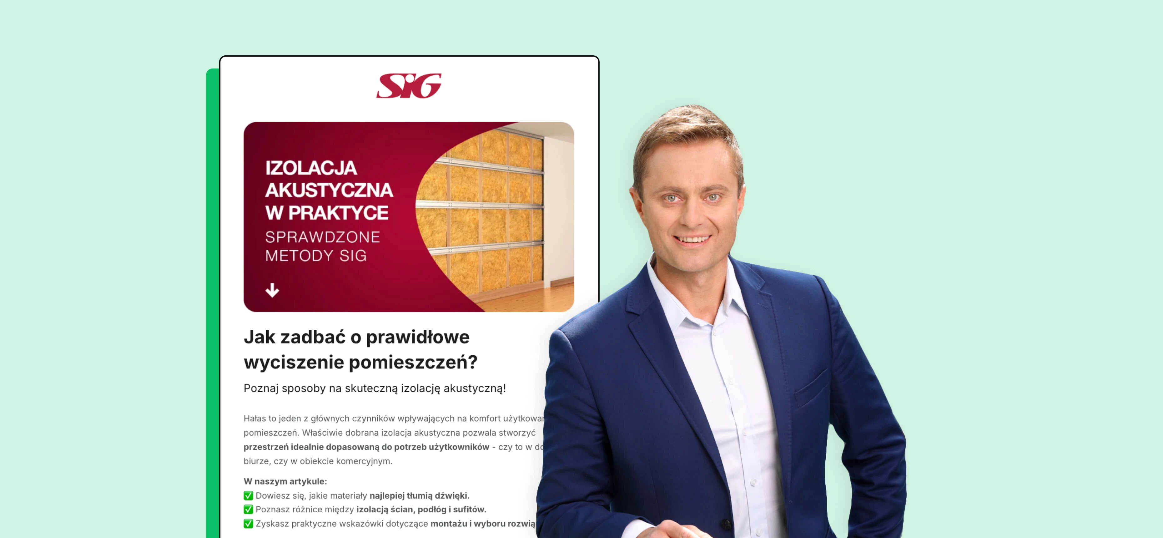 Edukacja odbiorców: Poprzez wysyłkę poradnikowych newsletterów, informacji branżowych oraz nowości produktowych, SIG dzieli się wiedzą i buduje pozycję eksperta w swojej dziedzinie.