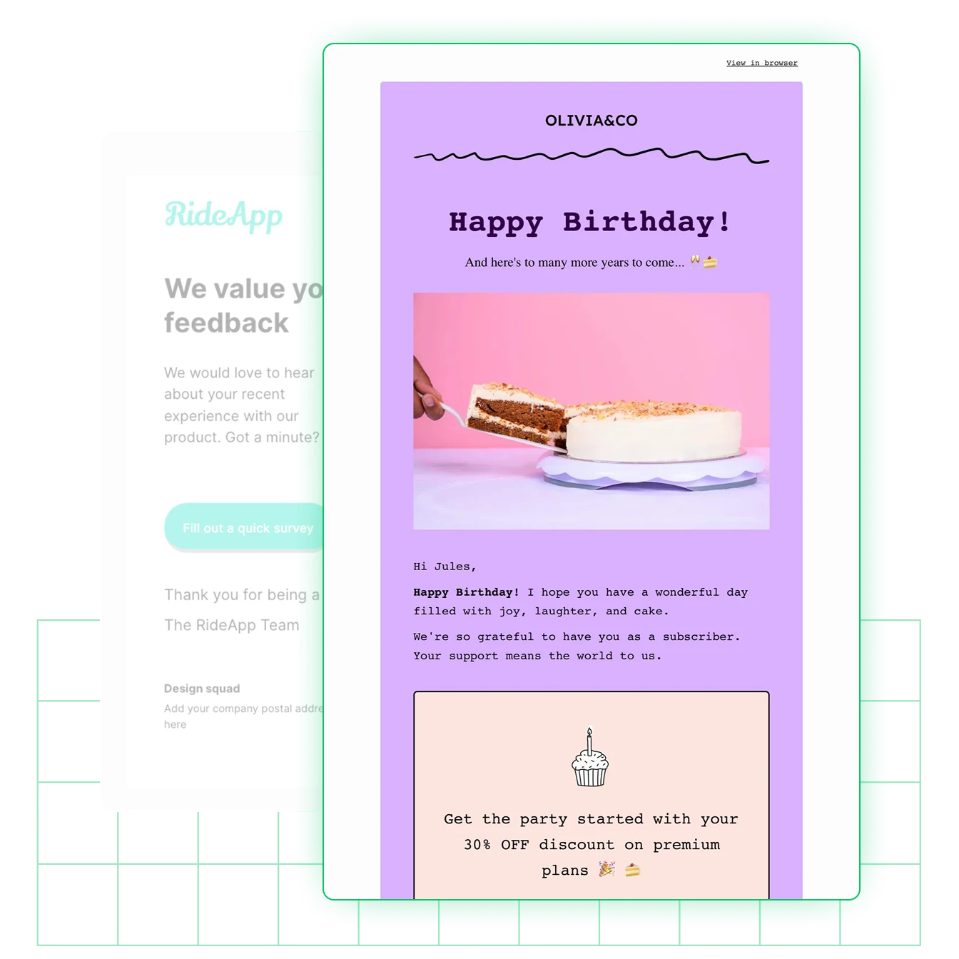 Dzięki wyzwalaczom opartym na datach możesz obchodzić urodziny klientów lub rocznice współpracy – bo każdy subskrybent zasługuje na to, by czuć się wyjątkowo.