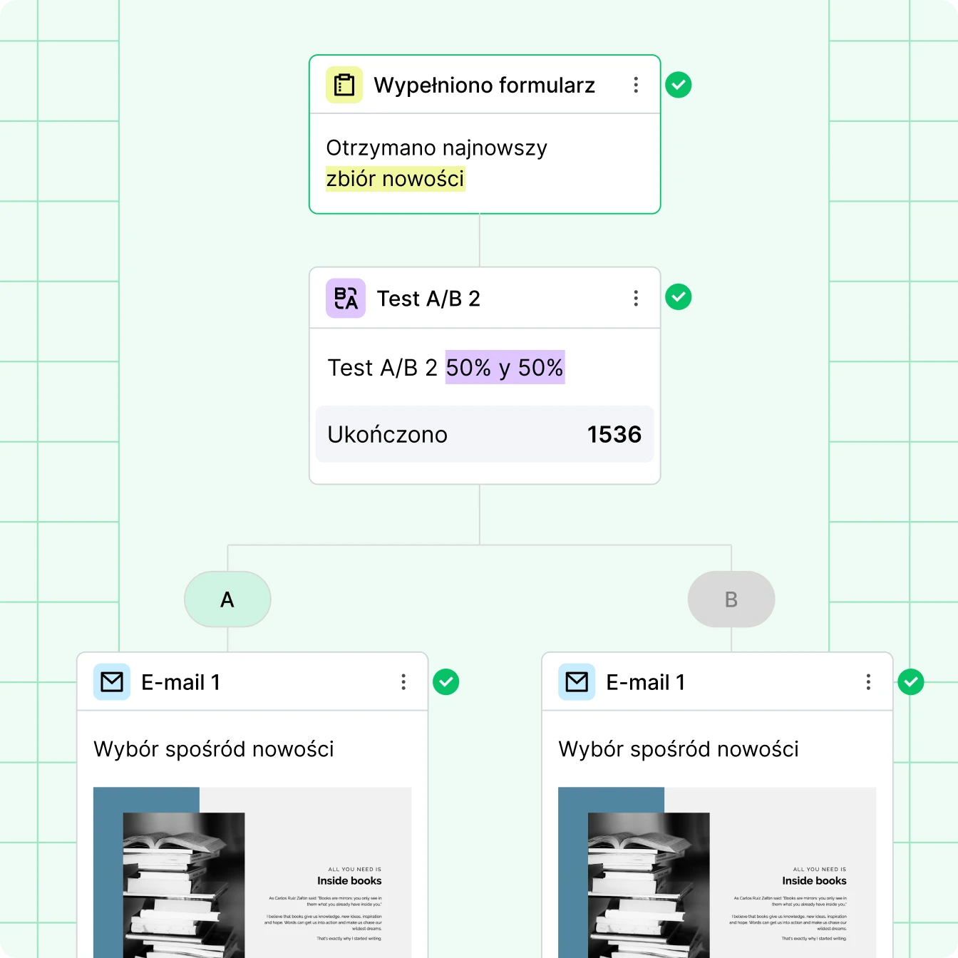 Test A/B: Pozwala przetestować różne wersje automatycznych e-maili.