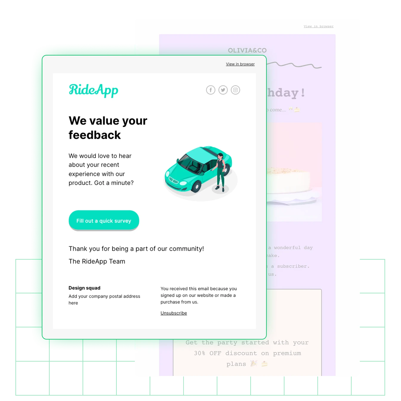 Uruchamiaj automatyczne e-maile, kiedy klient dołączy do konkretnego segmentu. Buduj własne lub korzystaj z już gotowych propozycji.