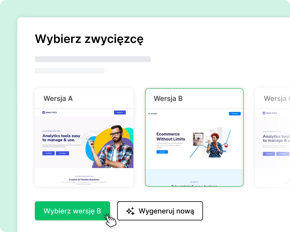 Przetestuj do 5 wersji landing page'y, dzieląc ruch między każdą z nich.