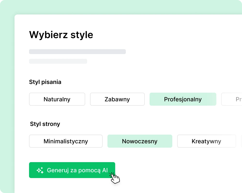Przejdź od pomysłu do publikacji w rekordowym czasie. Dodaj do generatora AI zapytanie, a otrzymasz kompletny landing page, który możesz edytować.