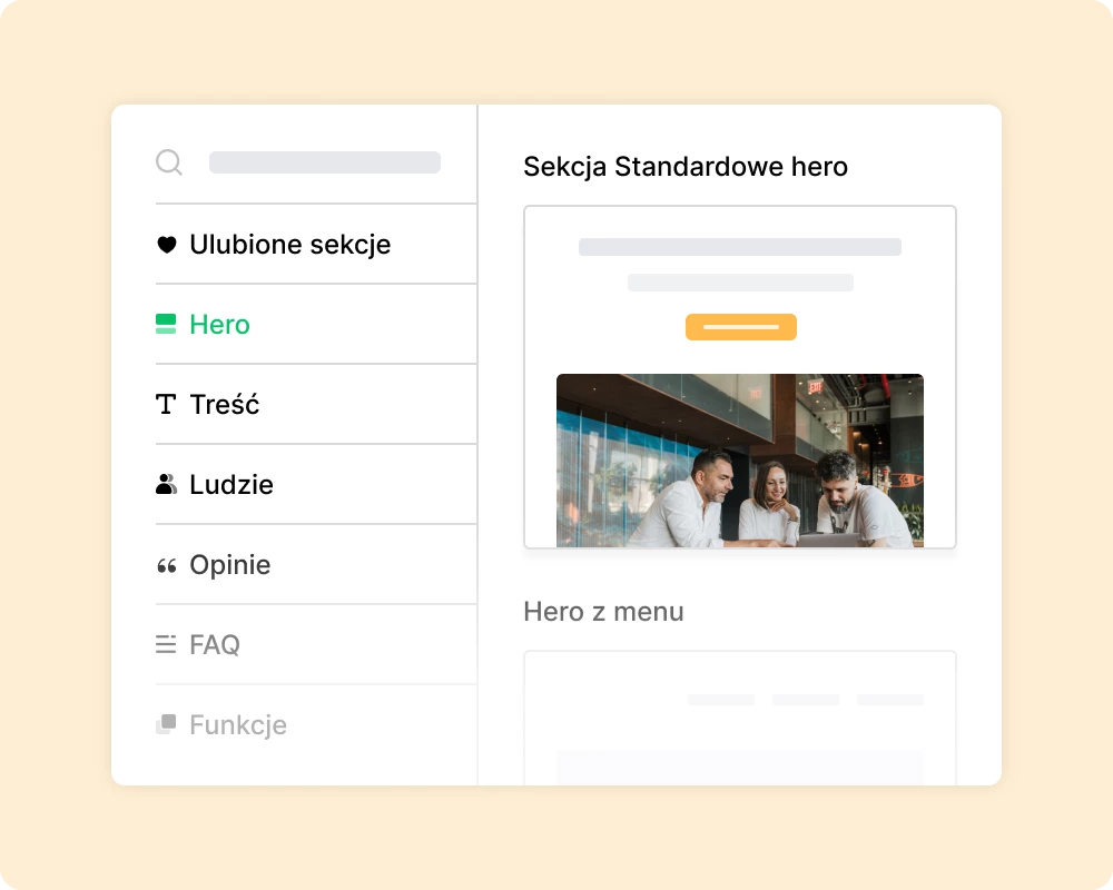 Wybieraj spośród ponad 70 profesjonalnie zaprojektowanych sekcji. Personalizuj poszczególne bloki, CTA, obrazy, ankiety i nie tylko.