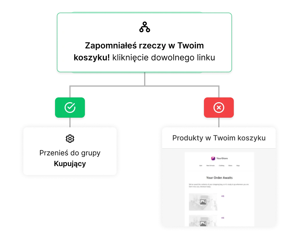 Zautomatyzuj dostarczanie lead magnets lub produktów cyfrowych. Wyślij link za pomocą automatycznej wiadomości e-mail i dodaj link do landing page z podziękowaniem.