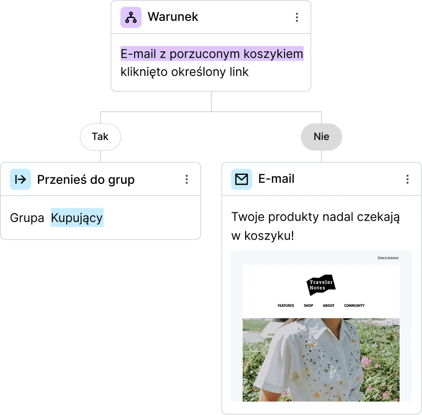 Zautomatyzuj wysyłanie wiadomości e-mail, aby pielęgnować potencjalnych klientów i generować sprzedaż. Wszystko jest możliwe: od prostych e-maili powitalnych po złożone sekwencje, które dostosowują się do każdego subskrybenta i każdej subskrybentki.