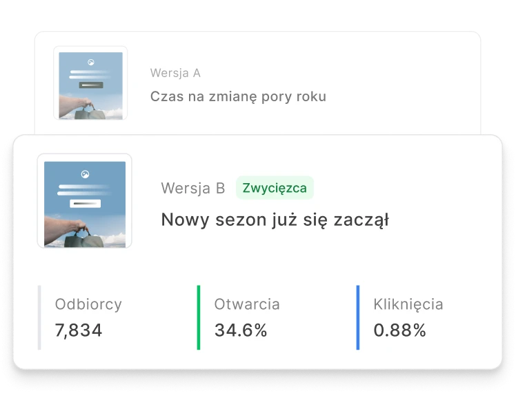 Testuj A/B absolutnie wszystko: kampanie, automatyzacje, formularze, landing page'e i więcej. Odkryj, co rezonuje najlepiej, i z pewnością siebie wdrażaj zwycięskie warianty.