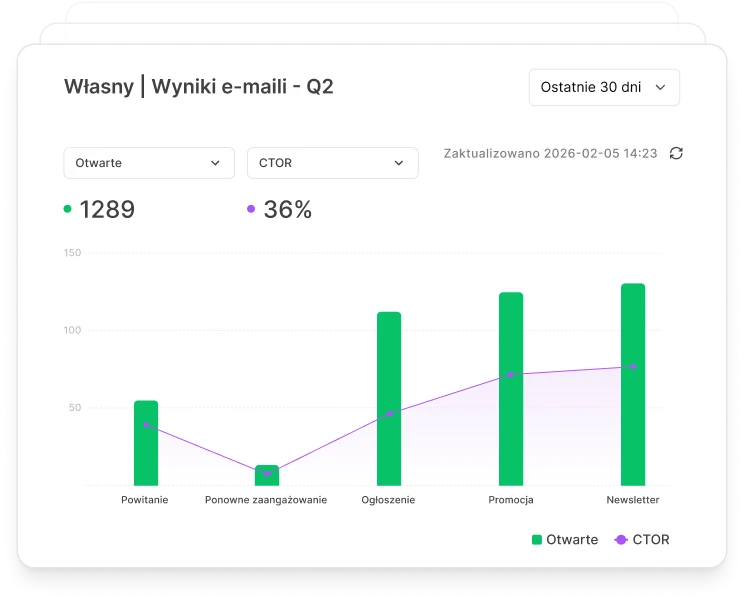 Dowiedz się, co działa i rób tego więcej dzięki profesjonalnym narzędziom do analityki e-mail marketingu. Zyskaj wizualne wykresy, własne raporty i szczegółowe podsumowania, które uwydatnią wskaźniki niezbędne do skalowania biznesu.