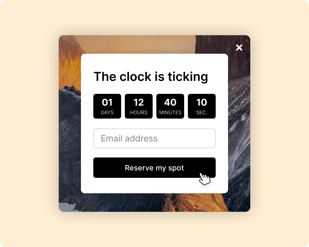 Używaj liczników czasu, aby odwiedzający witrynę mogli wyraźnie zobaczyć, kiedy organizujesz kolejne wydarzenie. Pozwól im zarejestrować się bezpośrednio z poziomu pop-upu lub przekieruj ich na stronę wydarzenia.