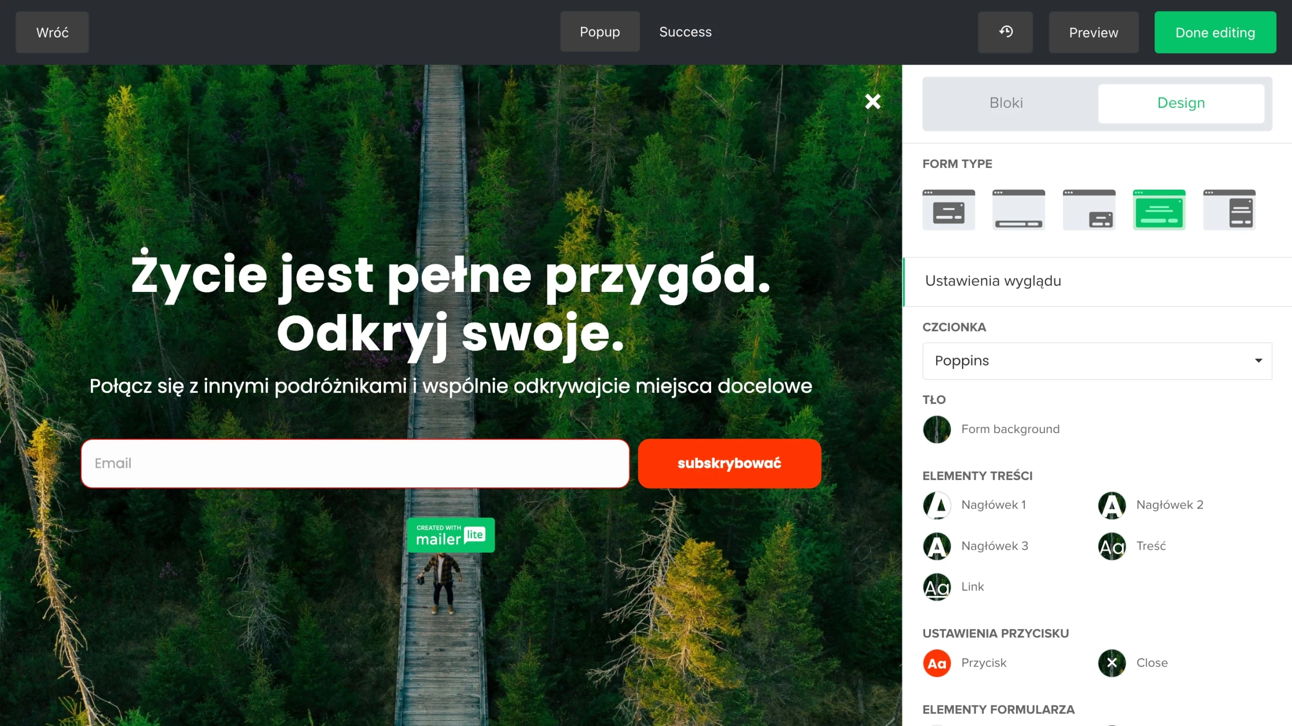 Znajdziesz u nas formularz na każdą okazję: wbudowane formularze i pop-upy do zbierania leadów oraz promocyjne pop-upy do powiadamiania ludzi o ważnych treściach. Każdy typ formularza dostępny jest w wielu wariantach, które można dostosować do własnych potrzeb.