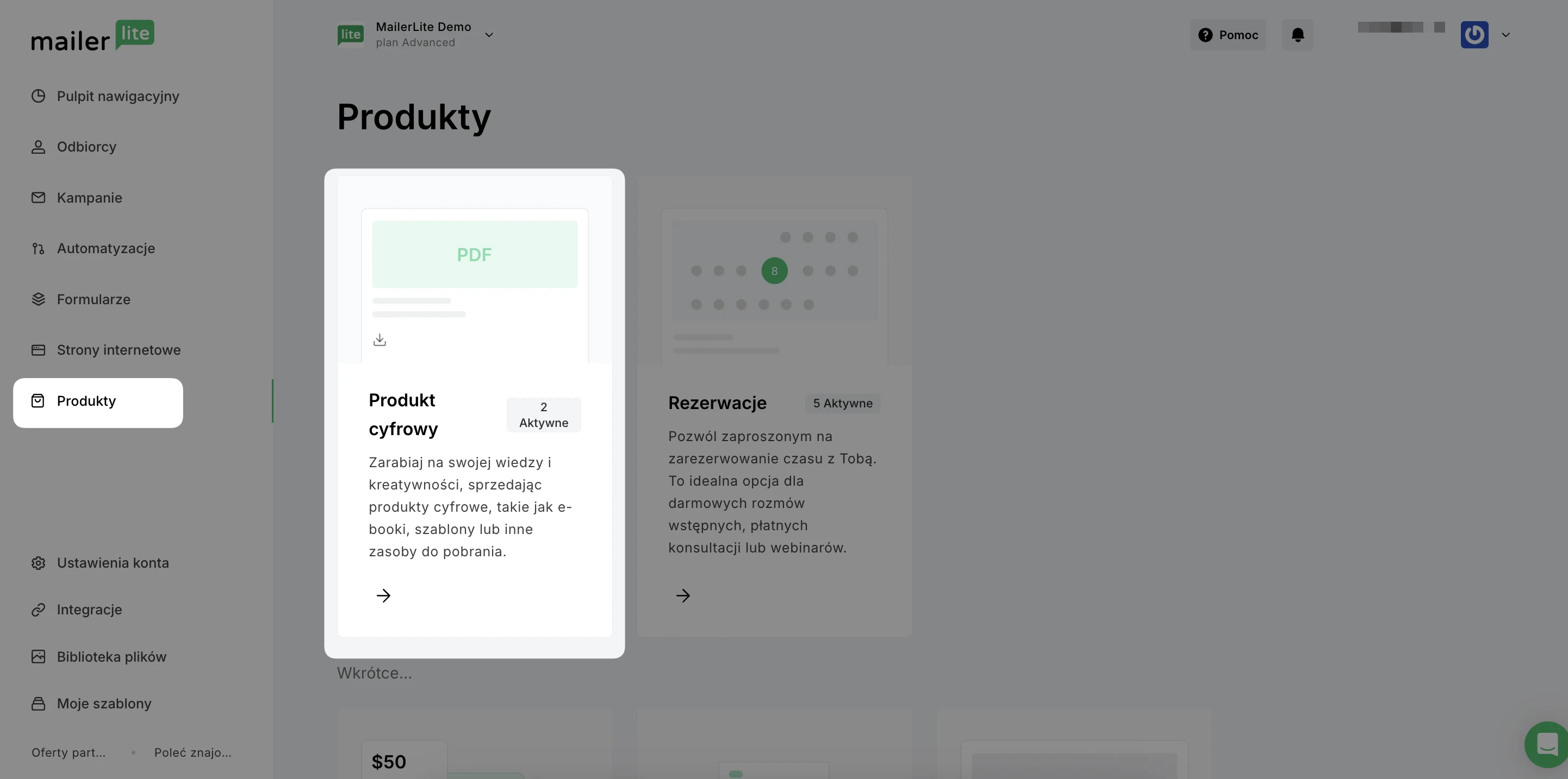 Ważna uwaga: Obecnie w MailerLite można tworzyć wyłącznie jednorazowe produkty cyfrowe do pobrania. Inne opcje, takie jak Subskrypcje i Członkostwa, zostaną dodane w przyszłości. Opcja Subskrypcji jest jednak dostępna, jeśli korzystasz z integracji MailerLite ze Stripe.